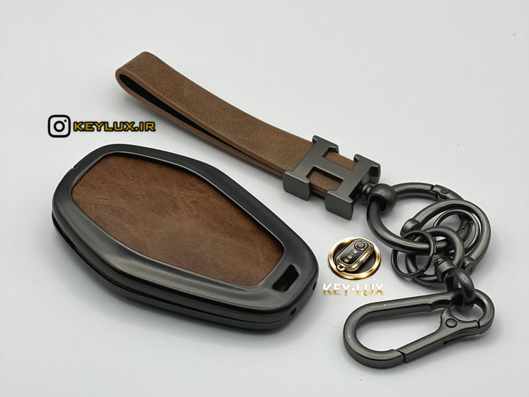 کاور ریموت چرم و فلز لاکچری همراه با بند ست