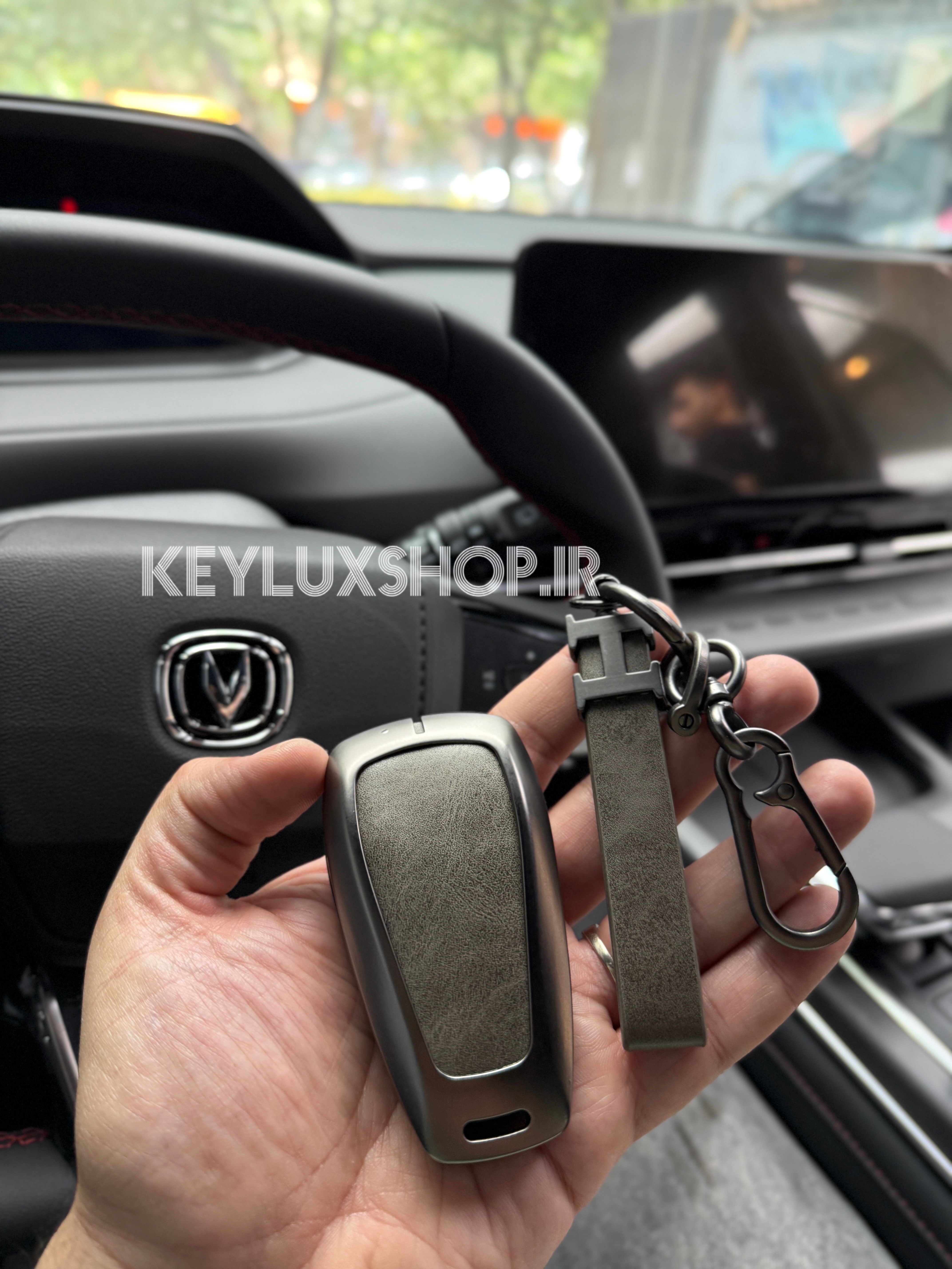 کاور ریموت چرم و فلز لاکچری همراه با بند ست